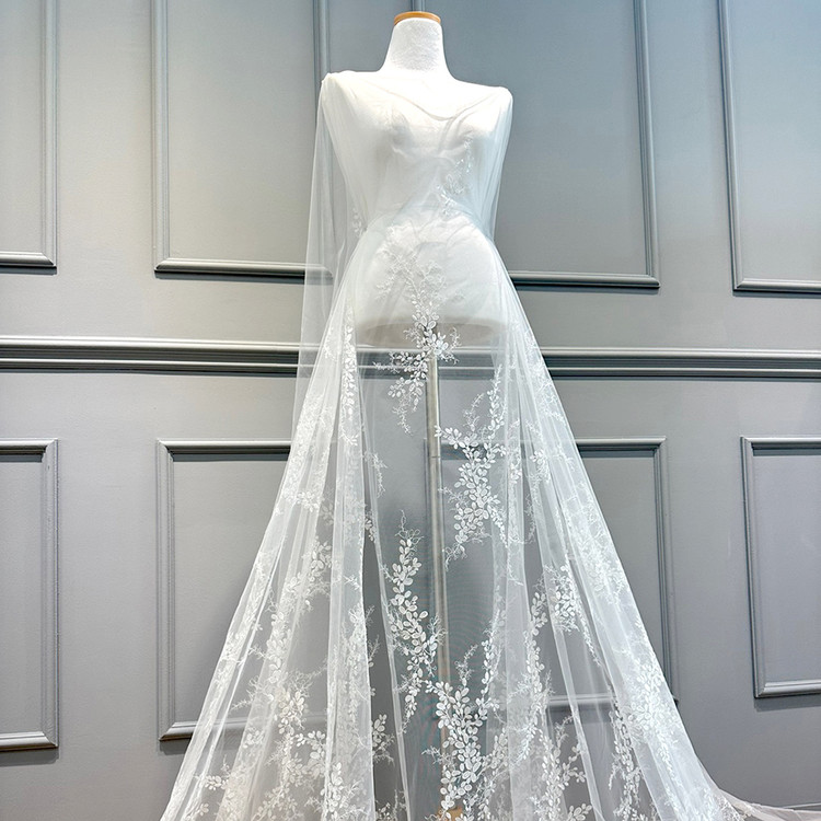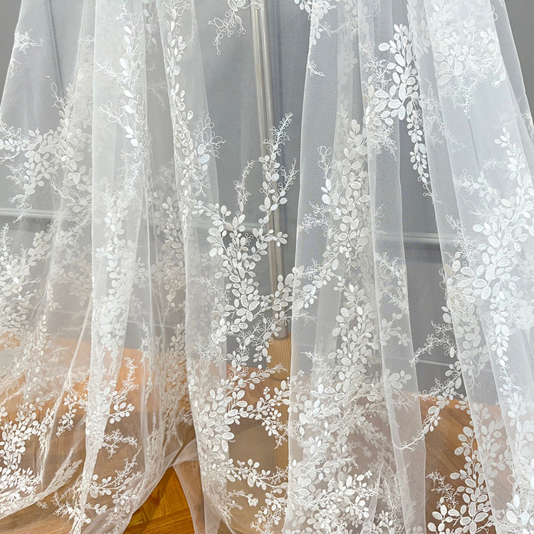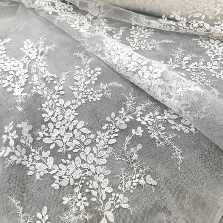Poly soft tulle with small leaves pattern embroidery lace