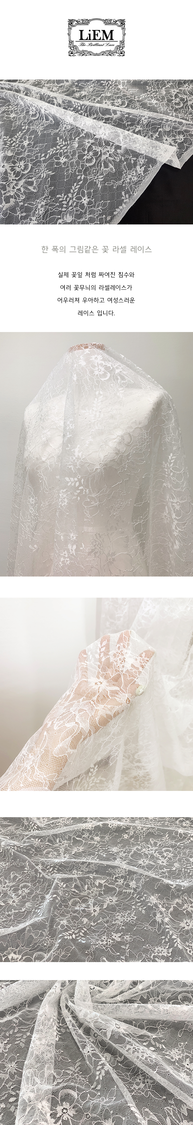 우아하고 여성스러운 꽃 무늬 라셀 레이스 입니다.