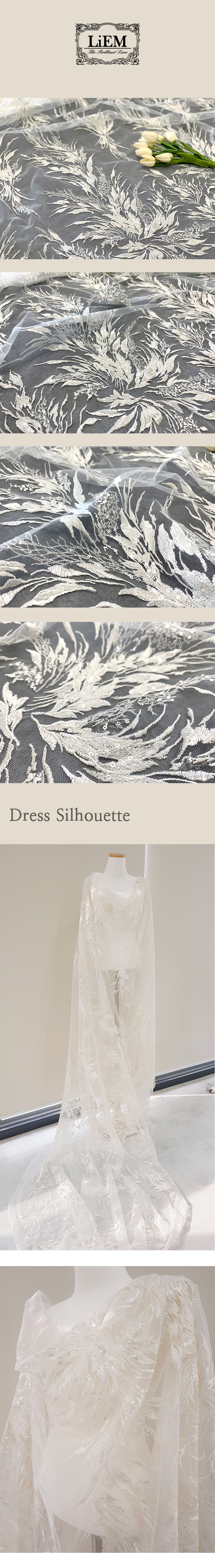 자수위에 스팽글 액세서리가 추가된 고급 웨딩원단 입니다.